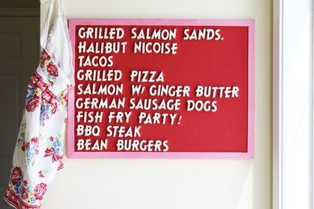 Every week, I make a menu for the upcoming week’s meals. I make my grocery list based on those meals and then post what the choices are for the week. It’s a great way to stay on budget and be organized at the same time. I’ve always used a chalkboard to post the menu for my family, but thought it would be really fun to make a board using some vintage plaster pin letters I found recently at an estate sale, rather than writing it out each week. And, a bonus is that I moved the chalkboard to the front porch for messages and greetings. I love how tidy the new menu board looks.