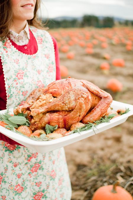 When it comes to roasting a turkey, I have a really simplistic approach. I have a huge old enamelware roaster that my mom found at Goodwill many years ago. I swear by roasting my turkey covered in the pan. To prepare it, I simply rub it with a little olive oil and sprinkle it with salt and pepper. That’s it. The covered roaster hold in all of the moisture, creating a very tender turkey. No dry turkeys here.