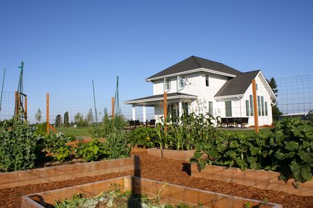 One of the first things we did when we moved into our farmhouse was to build a garden featuring raised beds and recycled fencing. We recycled the fencing from another area on the property where we no longer needed it. It’s six feet high to dissuade deer from jumping in. The deer here would be able to jump over the fencing if they chose to, but would have a difficult time getting out. The lower area of the fencing is much tighter mesh, in hopes of keeping other small critters out.