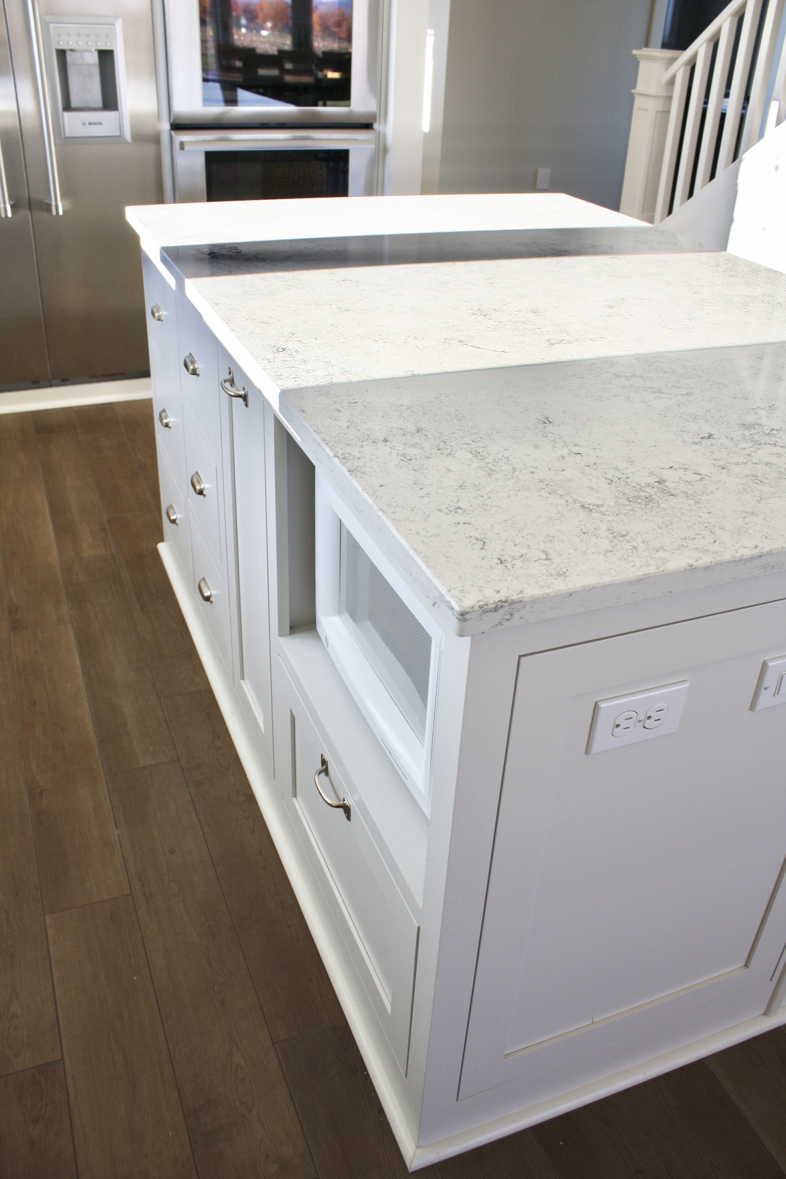 My appliances are all Thermador, with the exception of the freezer column which is Bosch, and the microwave which is G.E.