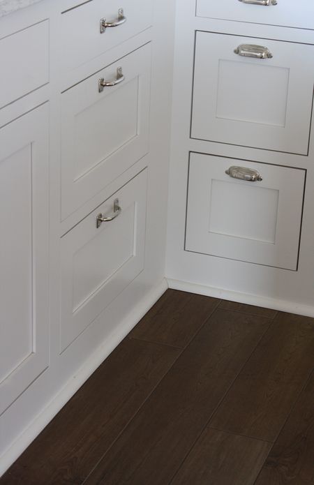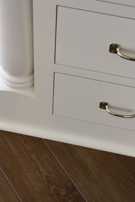 One small but impactful design element of my cabinets is that I had the cabinets made without any toekicks at the base. I find this to be both old-fashioned and modern at the same time. It’s also an element that no-one notices directly, yet adds depth to the design. I did the same thing in our last kitchen and really love the look. However, it does take some getting used to if you’re clutzy like me.