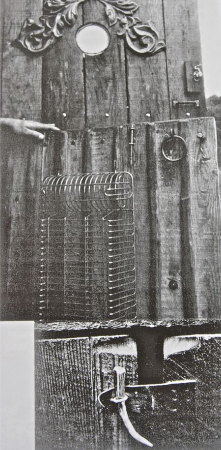 Found fretwork adorns the handmade dutch door, the dishrack finds a home on the door, an old found animal horn tip works as a latch. ~Serena