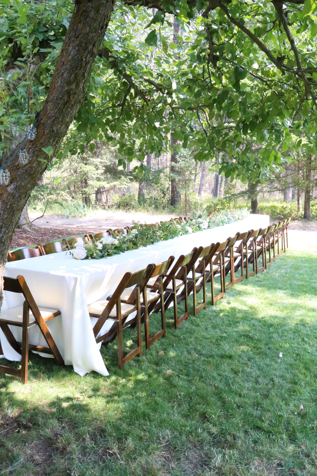 We celebrated my mother and father-in-law’s 50th wedding anniversary this week. Colin is one of six siblings and there are sixteen grandchildren. I think mostly because we’re such a big family and to keep it as intimate as possible, my parents-in-law decided to keep the celebration to just the 32 of us. The six siblings all took part in putting the party together and asked me to be responsible for the centerpieces for the table. Because it was such a momentous occasion, I wanted to do more than just a few centerpieces on the long table. I wanted it to be enormous – to really make a statement, reflecting this big day. Today I’m sharing step-by-step process of how I created this long floral table runner centerpiece and how you can make one too.