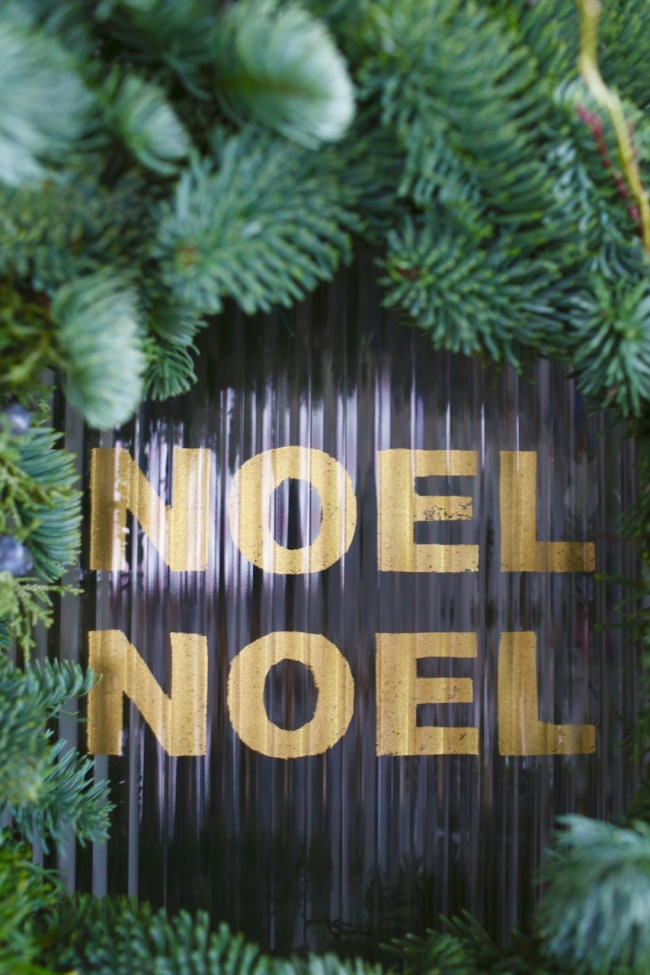 A few years ago, my friend Tiffany and I visited New York City during the holidays. It’s such a beautiful time of the year to visit, with the charm of the urban tree lots, Union Square Holiday Market(which is a U.S. version of Europe’s Christmas markets and really great), and decorations all around. I especially love the old office buildings with their gilded names on their front doors and it clicked in a little inspiration for me. Each Christmas since, I’ve been painting a little gilded Christmas greeting on our pantry door for an extra bit of cheer. Here’s an easy step-by-step guide to show you how to make your own.