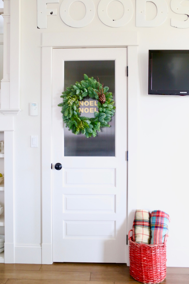 And I like to add a wreath to finish it off. (I use removable Command hooks to hang the wreath).