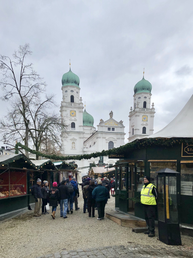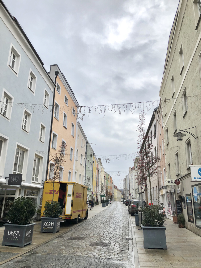 We arrived in Passau, Germany and strolled around the city, anxiously awaiting the opening of the Christmas Markets. I love a city at this time of day, when the deliveries in the pedestrian zones are quietly taking place and the little buzz slowly changes to a hummmm as the city begins waking up.