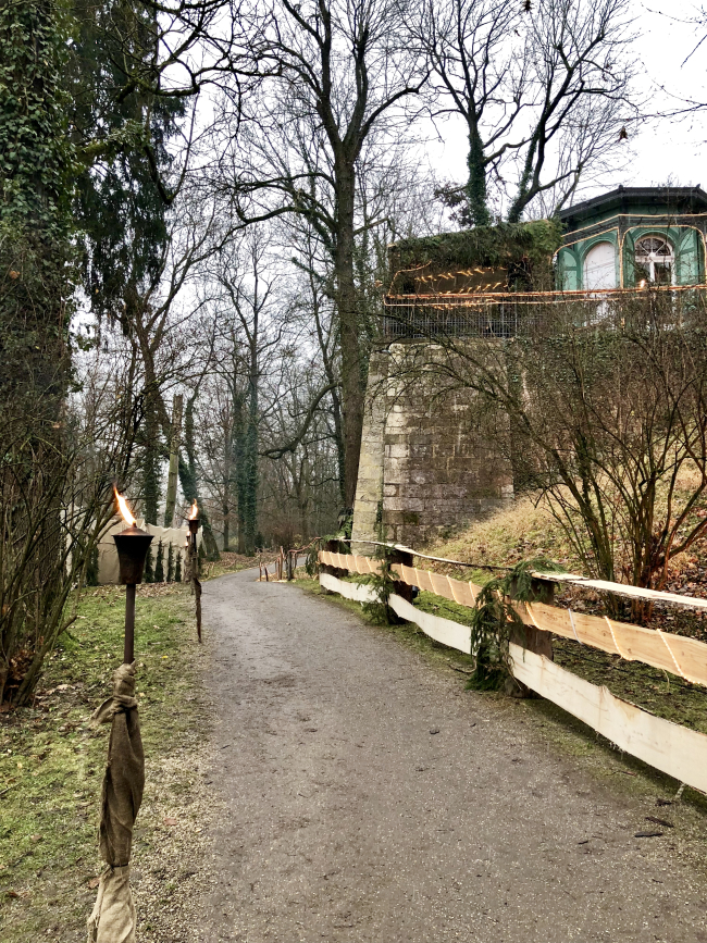 Obviously, you’ve gathered from the name that the market is held at a palace. The setting was so lovely! They completely set the stage for something special with the walkway at the entrance that winds through the trees with lit torches burning all the way. For a minute or two, you can’t at all see what lies ahead and then you turn a little bend and the castle and a smattering of stands appear and then more and more stands as you continue on.