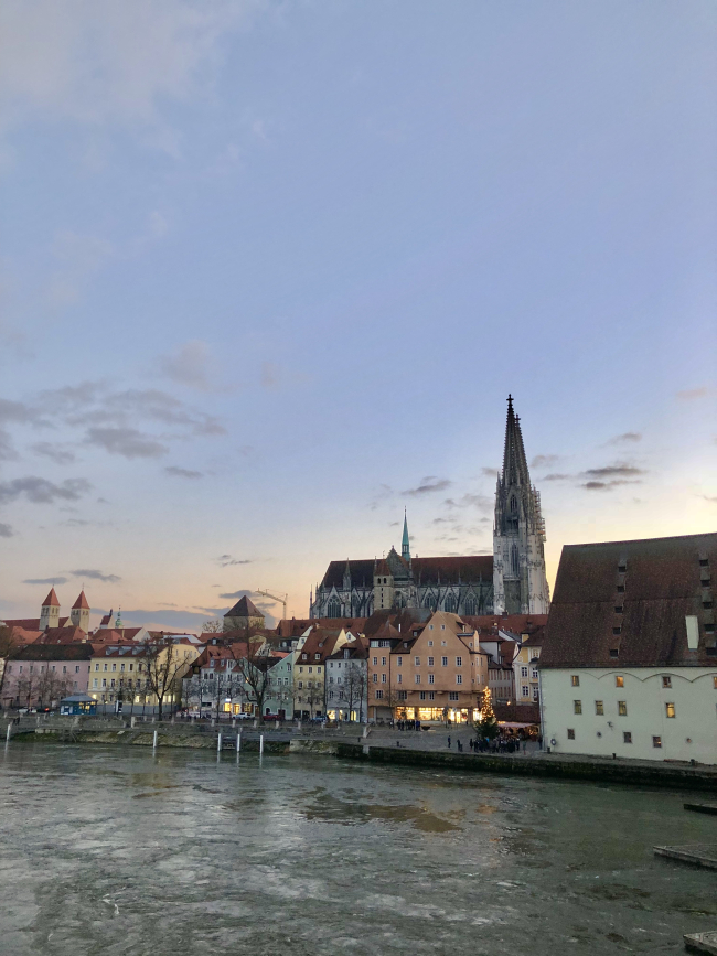 After a pot of tea, some scrumptious pastry, and feeling fully warm once again, I headed back over the bridge to find the bus. The sun was starting to go down and Regensburg looked so pretty.