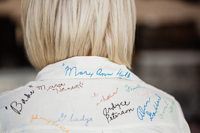 Toby was out visiting her favorite vintage shops in Spokane and perusing the racks of vintage clothing at Boulevard Mercantile when she happened upon this darling top. The hand embroidered names were so charming she knew she had to have it! Today I’m sharing the first in my show-and-tell themed series of posts, “What You Found” which features people and their favorite vintage finds.