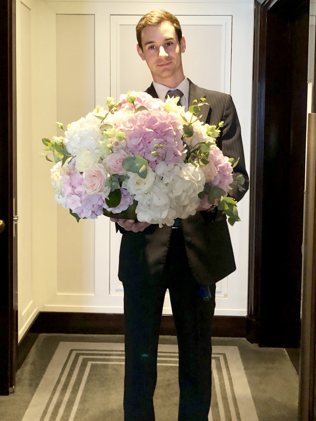 Minutes later, the doorbell rang and I was presented with a beautiful floral arrangement for my room. What a perfect start to my trip!