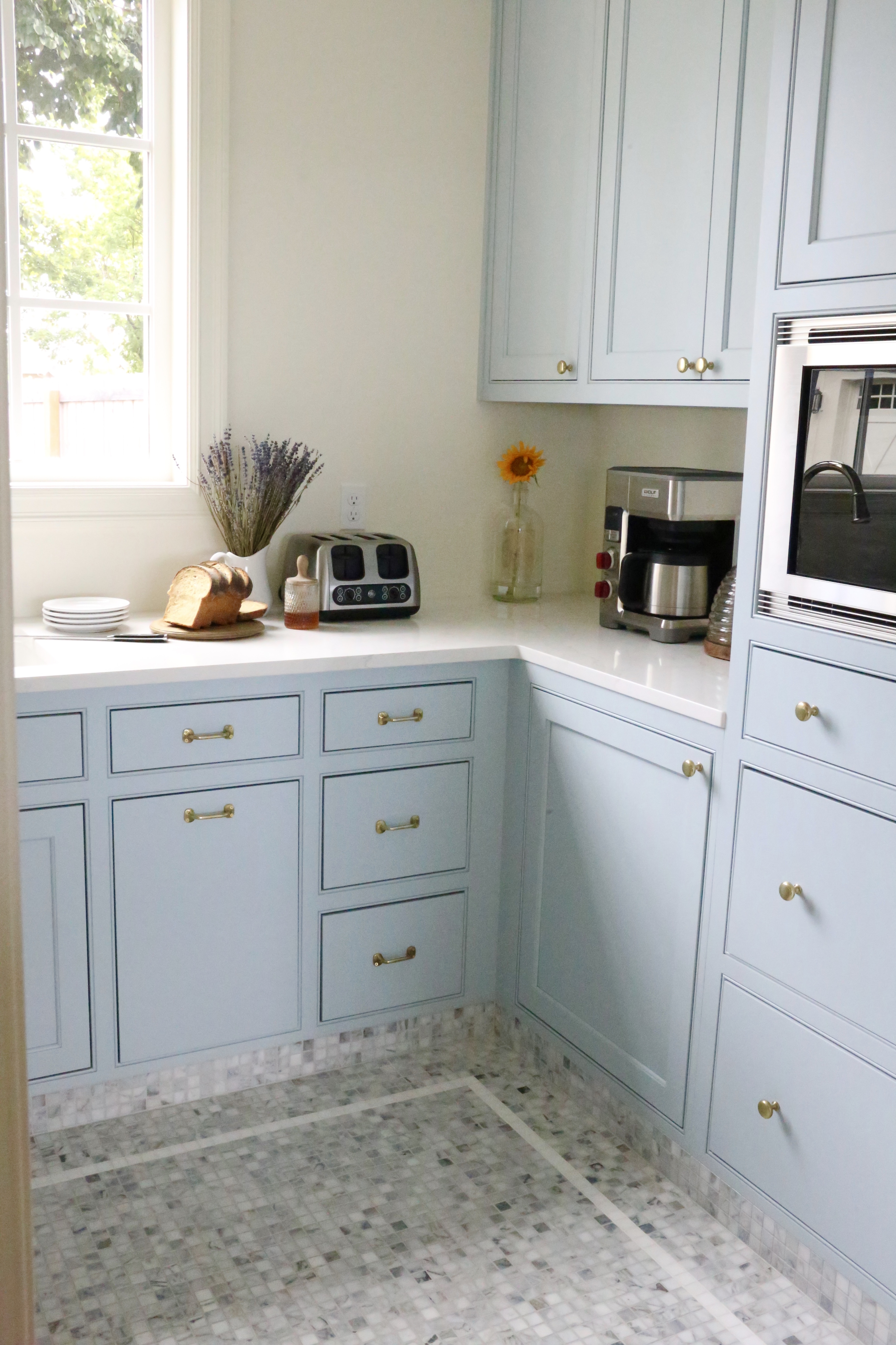- Cabinet Paint: SW “Sleepy Blue”. (This color tends to vary GREATLY in different lighting. If you are interested in this color, I highly recommend testing it first to see if you like it in the space.